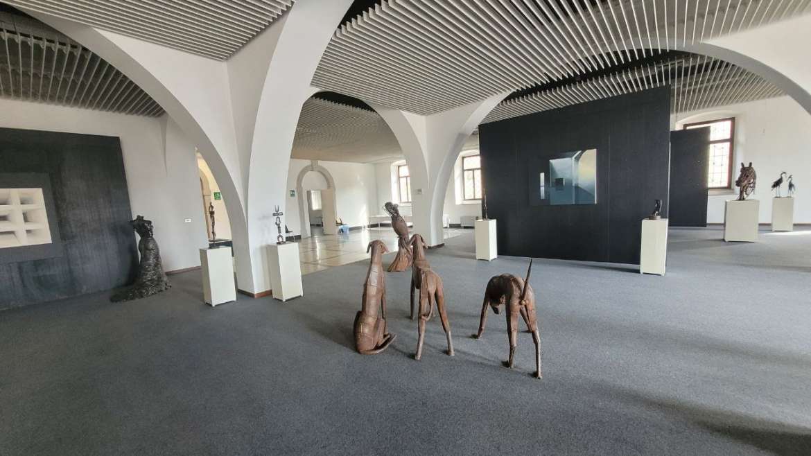 In questa foto del bellissimo Palazzo del Monte di Pietà di San Daniele del Friuli, scattata durante la mostra “il ferro è vivo” dello scorso settembre 2025, si possono ammirare alcune delle opere dell’artista del ferro Bepi Fattori, e i quadri del pittore e wall designer Fabrizio Mason.