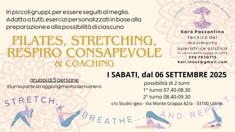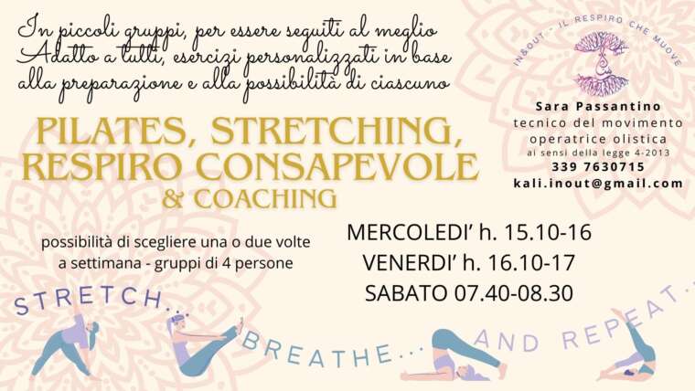Corsi di Pilates per piccoli gruppi a partire dal 16 ottobre Il Pilates è una ginnastica posturale, a corpo libero o con piccoli attrezzi, volta a migliorare la postura appunto, tramite esercizi incentrati su respiro, mantenimento del core (baricentro), concentrazione, fluidità, isolamento dei distretti corporei, controllo, precisione e ripetizione degli stessi (una sorta di routine). L’obiettivo? Ritrovare fluidità e armonia…